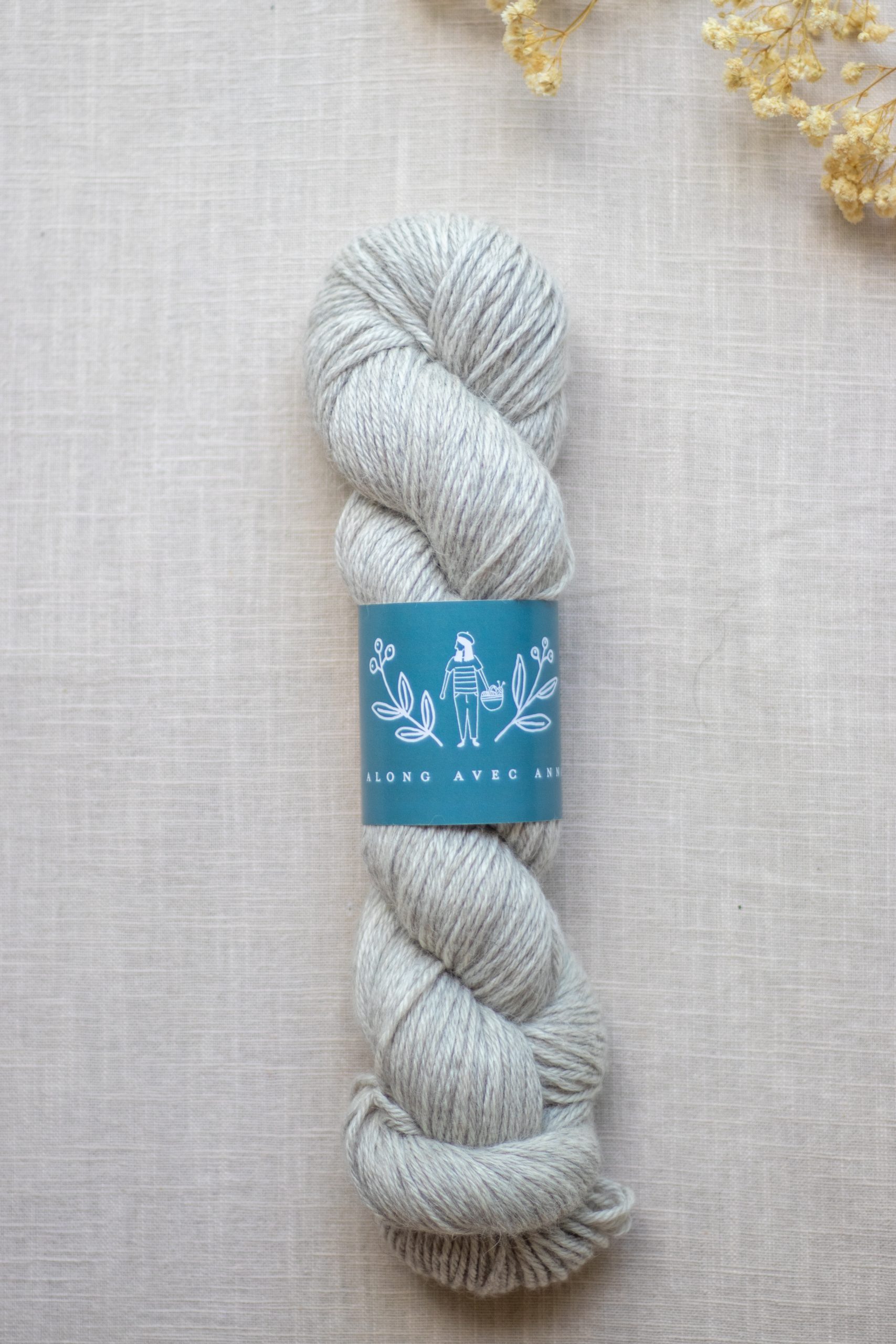 Fil Alpaga/Soie/Cachemire d’Along avec Anna. Ce fil est cruelty-free et Oeko Tex 100.