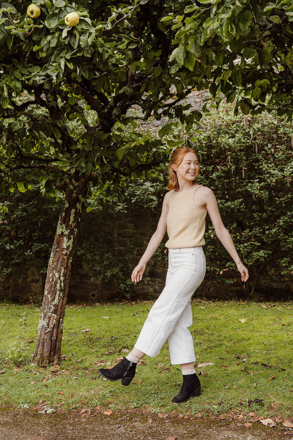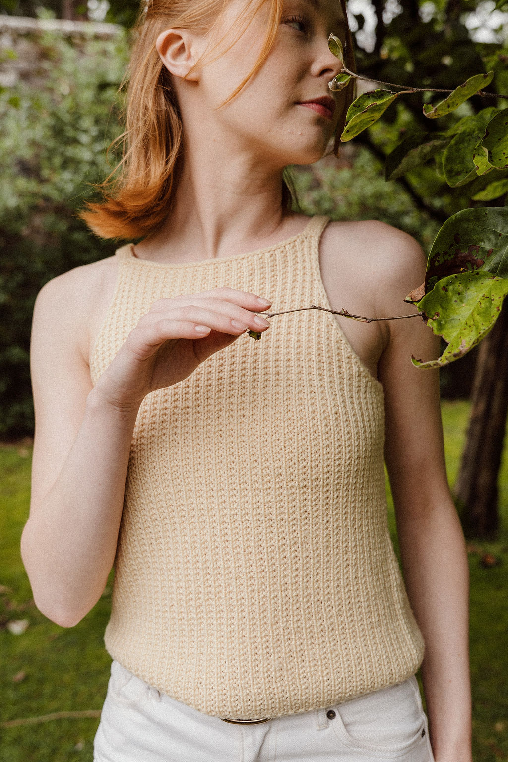 Sample version: Knit in size 85 with 5 cm of positive ease, using Double Merino, Along Avec Anna, in the Vanille colourway.