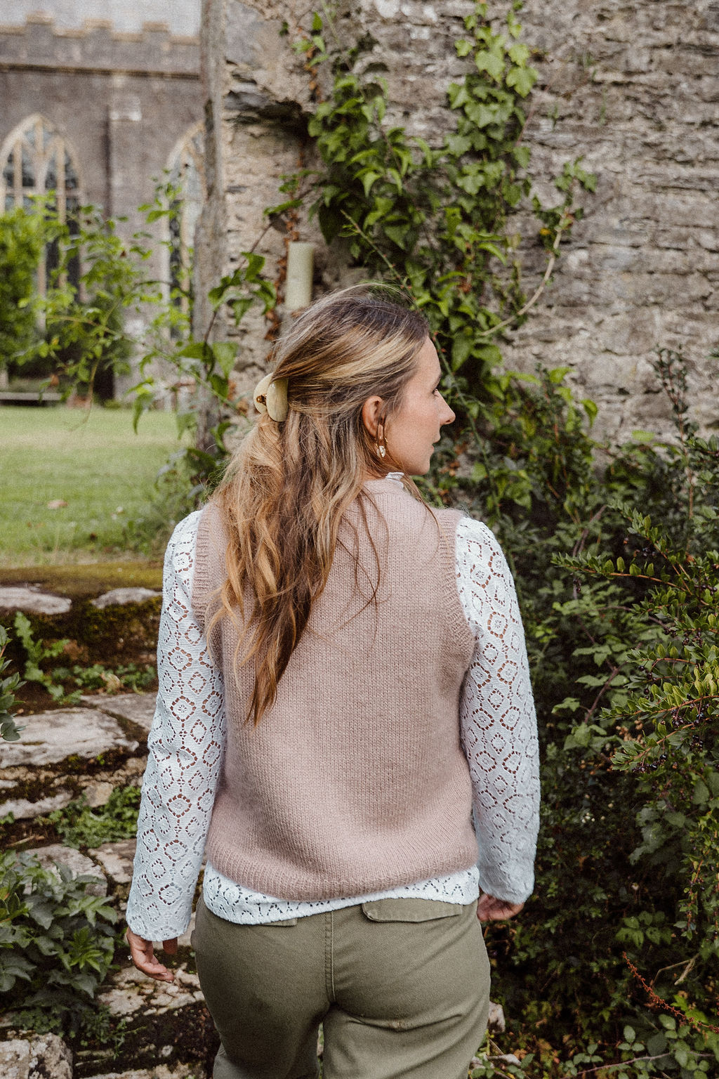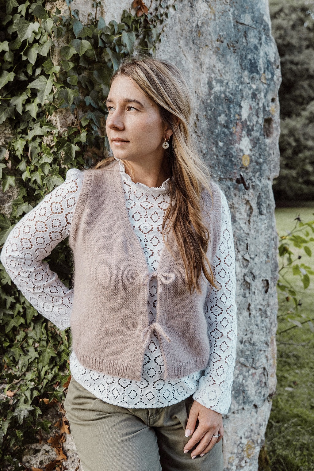 Knit in size 90 with 10 cm of positive ease, in Merino and Silk Mohair Along Avec Anna, Poudre colourway.