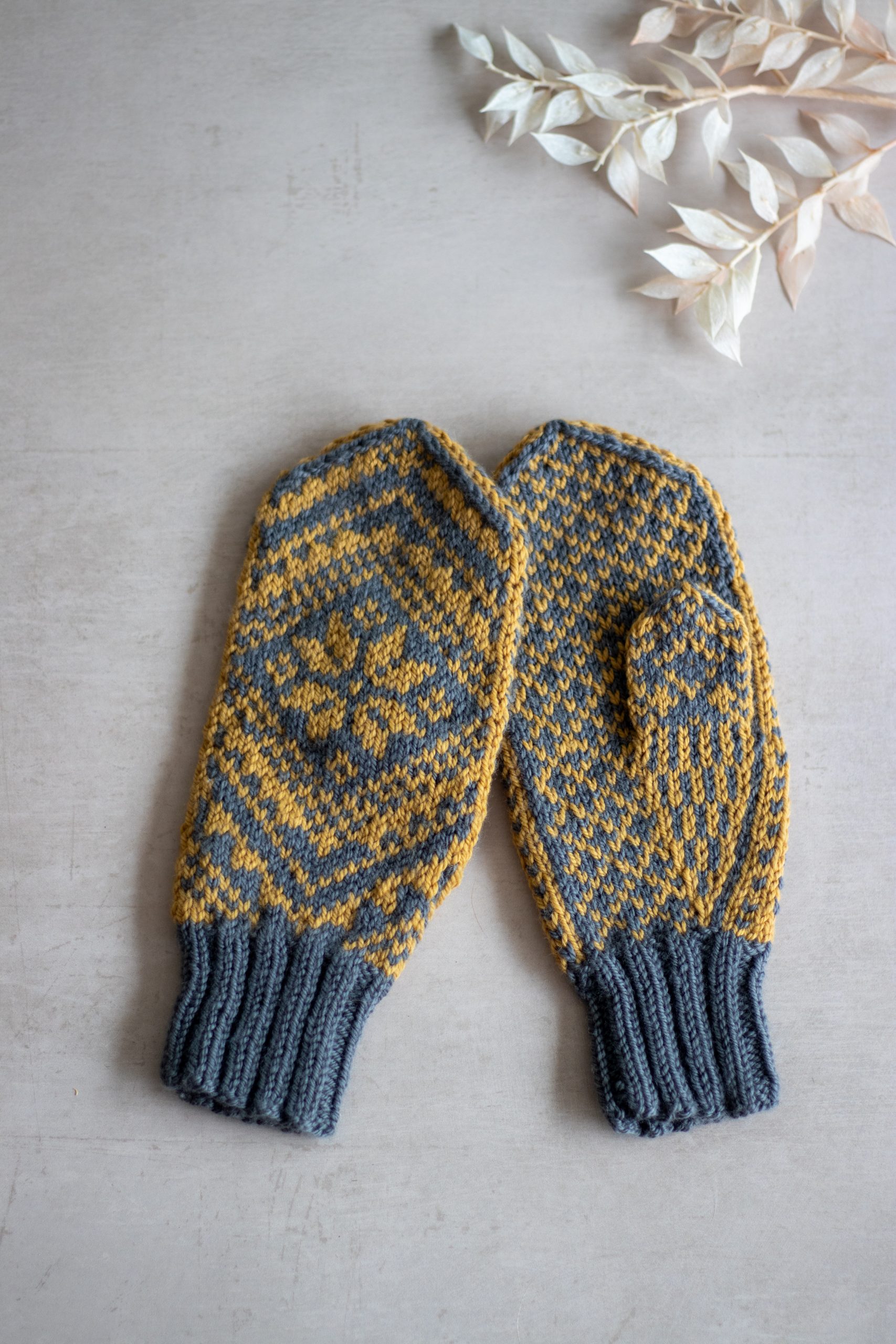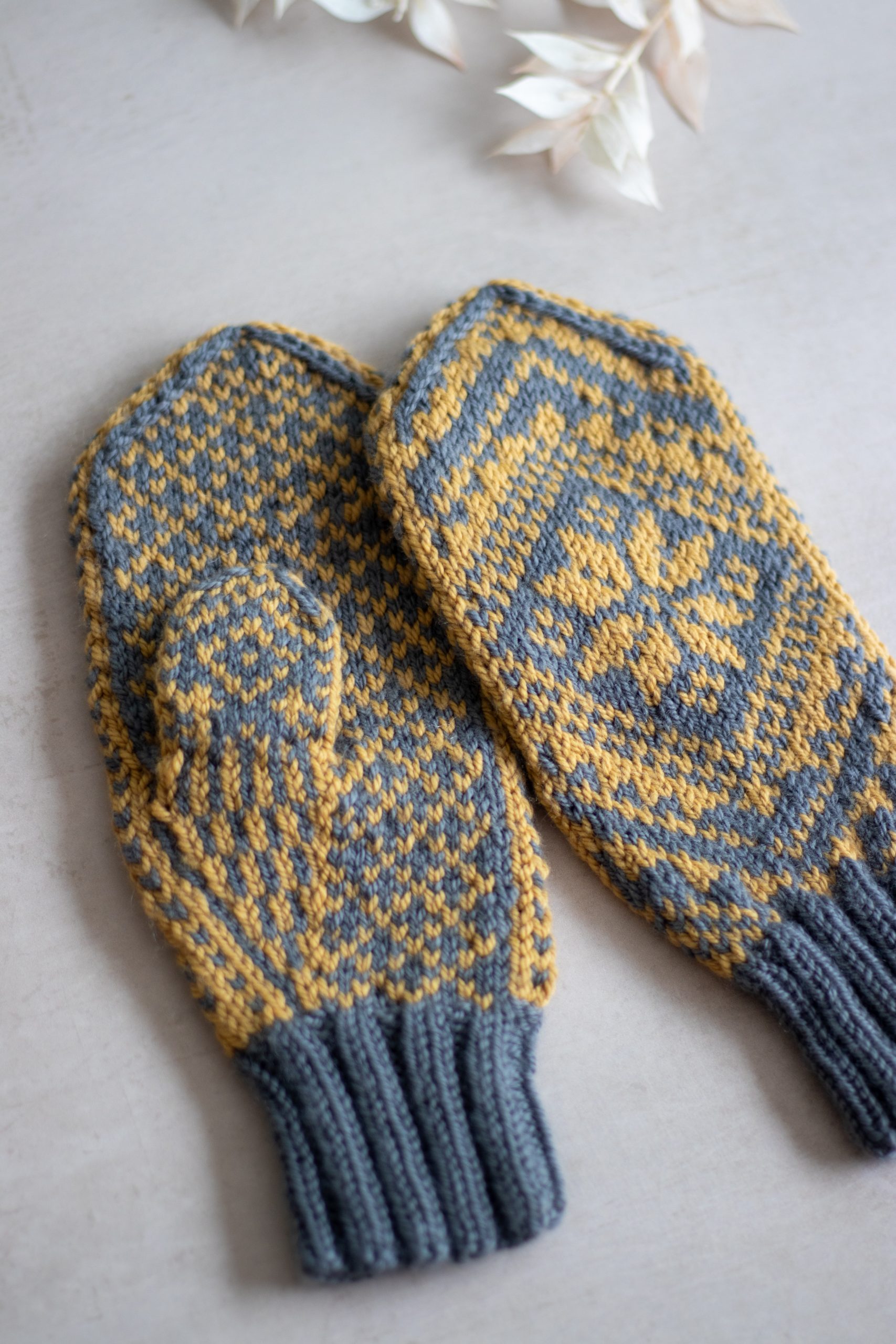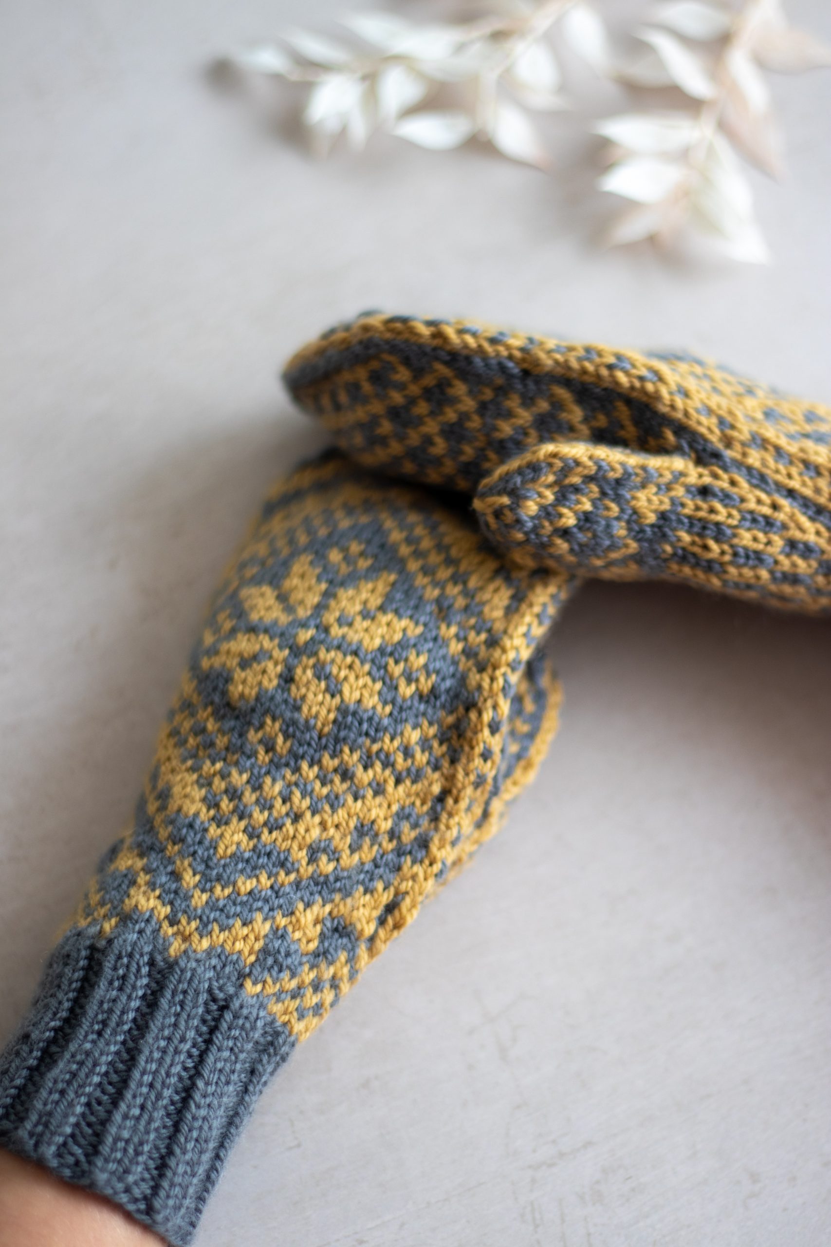 The Starcross mittens are seamlessly worked from the cuff. They have a beautiful Scandinavian-inspired motif pattern.